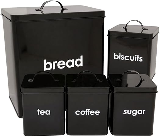 Virojanglor Black Kitchen Storage Tins Biscuit Bread Tea Coffee