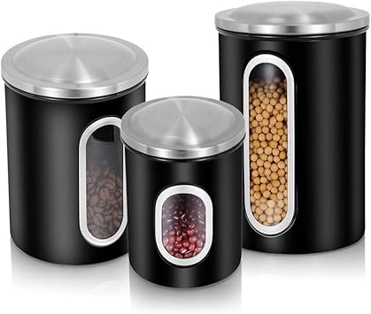 Amazon Com Canisters Set 3 Piece Window Kitchen Canister With