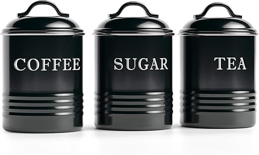 Tea Coffee Sugar Black Canister Canisters Printed Metal Kitchen