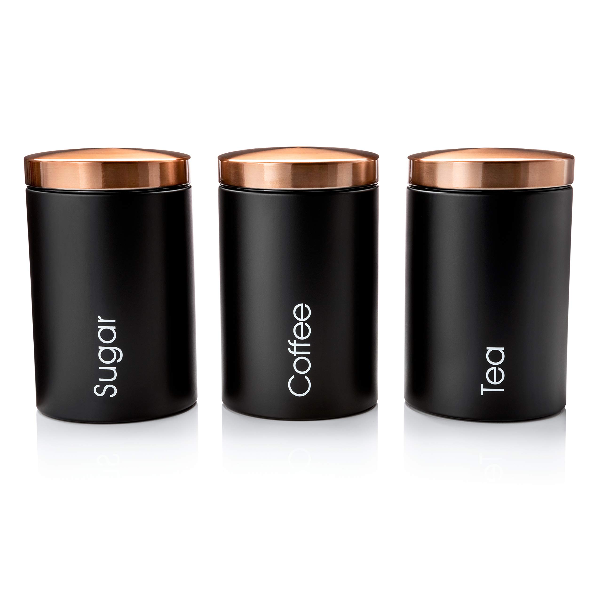 Kauri Design 3 Piece Matte Black Food Canister Set With Copper