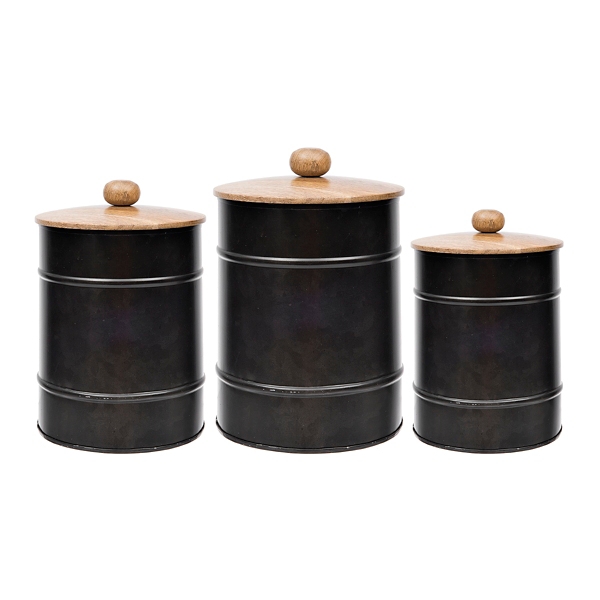 Black Galvanized Canisters With Wood Lid Set Of 3 Kirklands