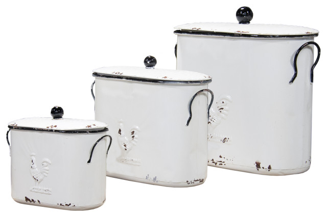 3 Piece Metal Canister Set Farmhouse Kitchen Canisters And