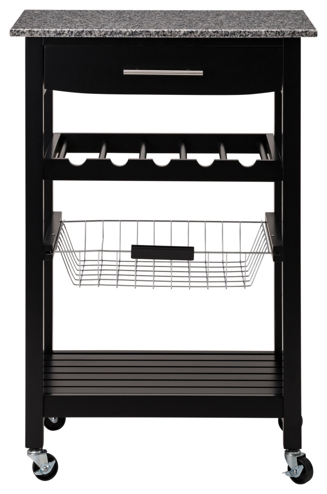 Rolling Kitchen Island Cart Or Counter With Black Stone Marble Top