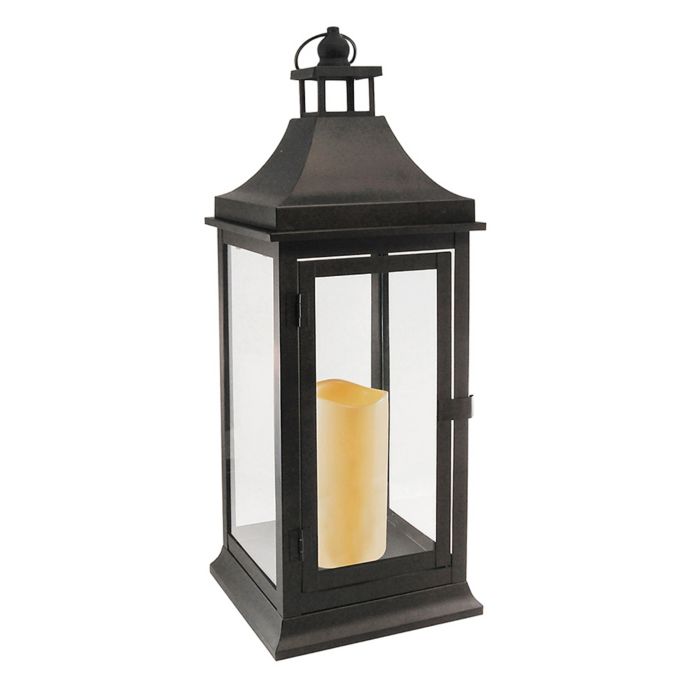 Classic 20 Inch Metal Lantern With Led Candle With Timer In Black