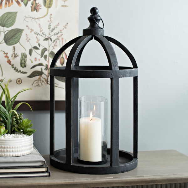 Black Wood Rectangular Open Frame Lantern Kirklands