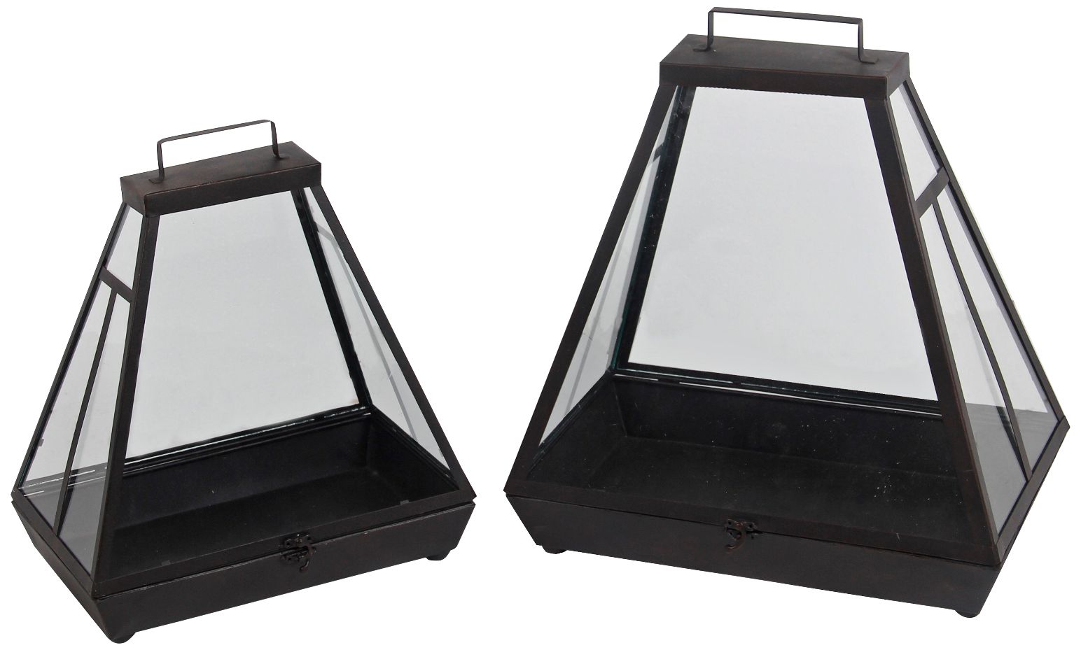 Litton Lane Black Tin And Clear Glass Lantern Candle Holder Set