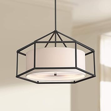Atlantic 24 Wide 3 Light Black Hexagon Pendant Light Chandeliers