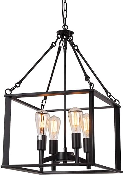 Hykolity 4 Light Lantern Pendant Light Rustic Chandelier Ceiling