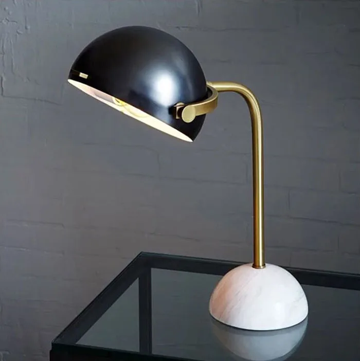 Black Steel Adjustable Shade Marble Base Table Lamp