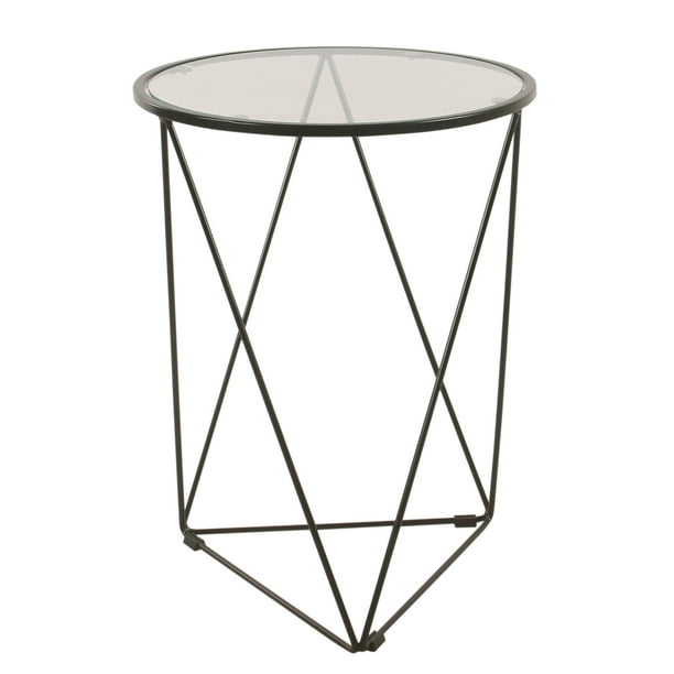 Shop Black Metal Black Tempered Glass Accent Table Overstock