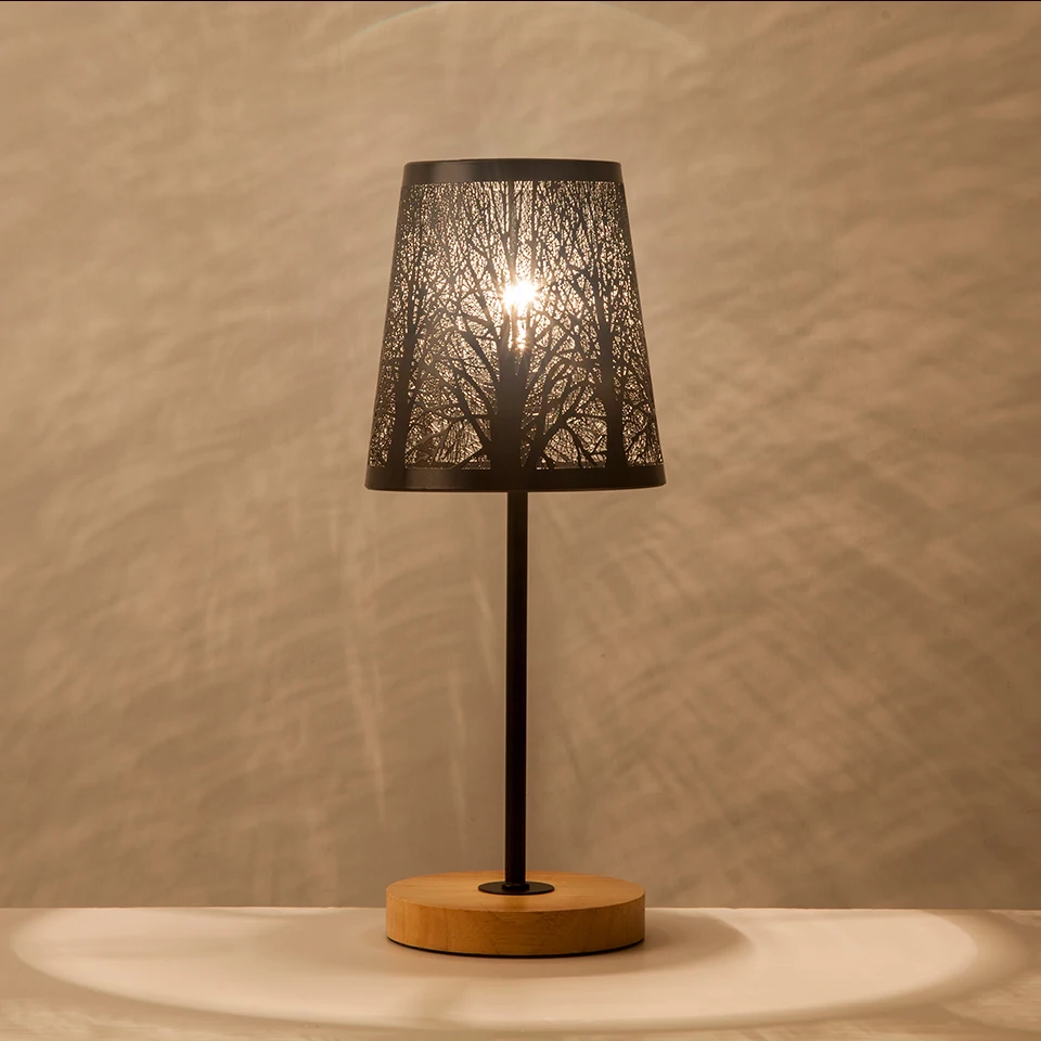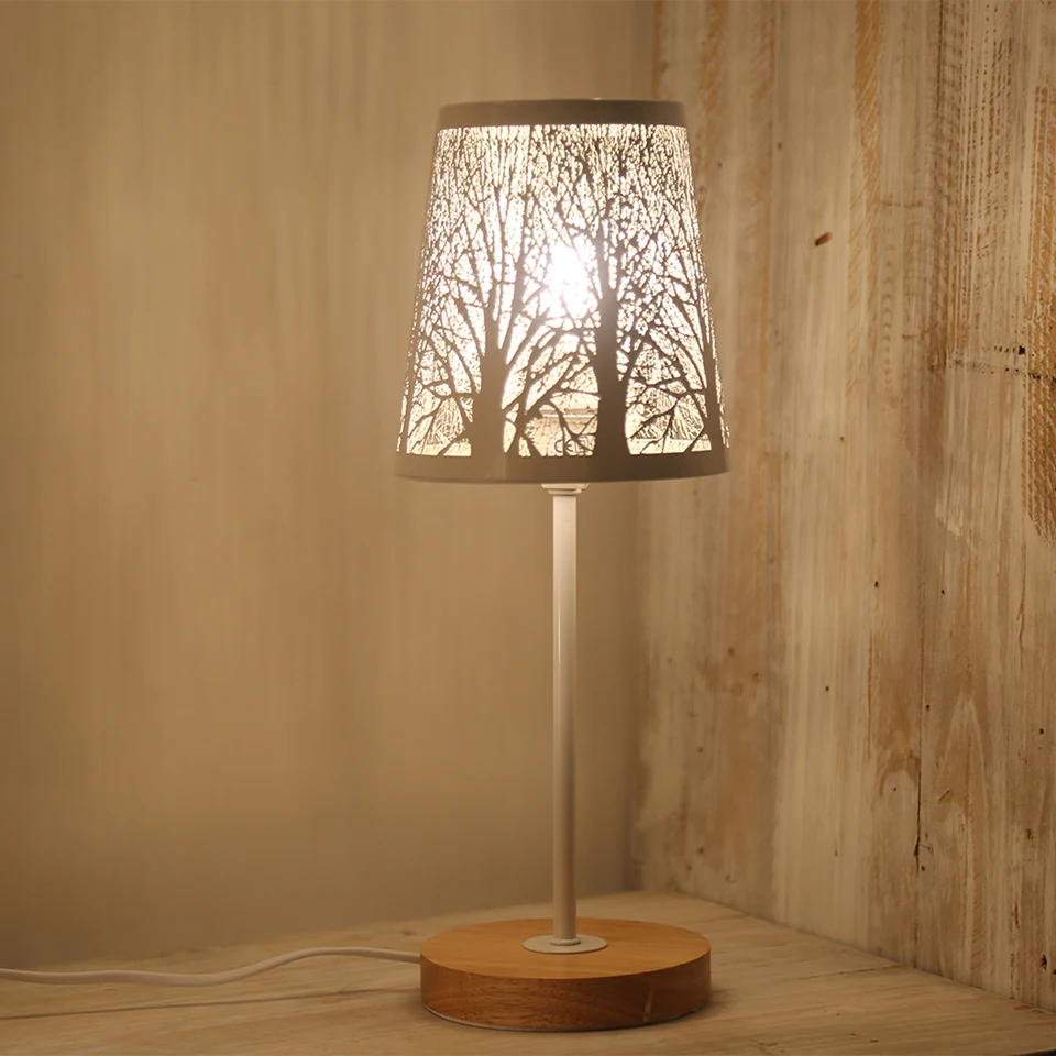 Oygroup Vintage Metal Hollow Lamp Shade Wood Base E14 Table Lamp