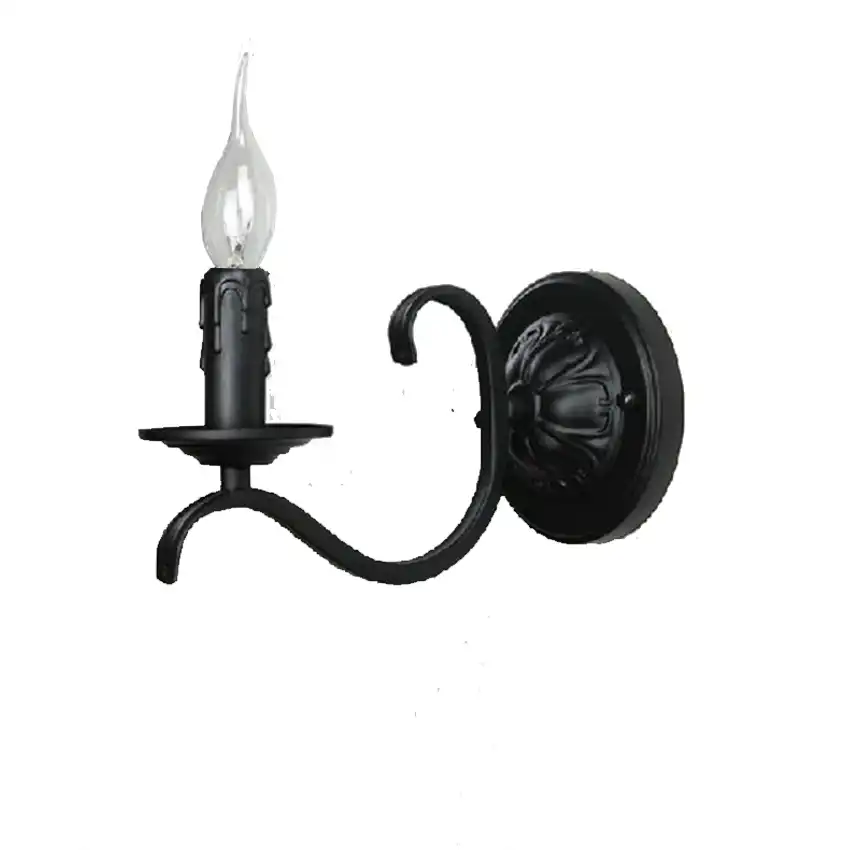 Europe Vintage Candle Shape Wall Lamps Black Metal Simple Loft