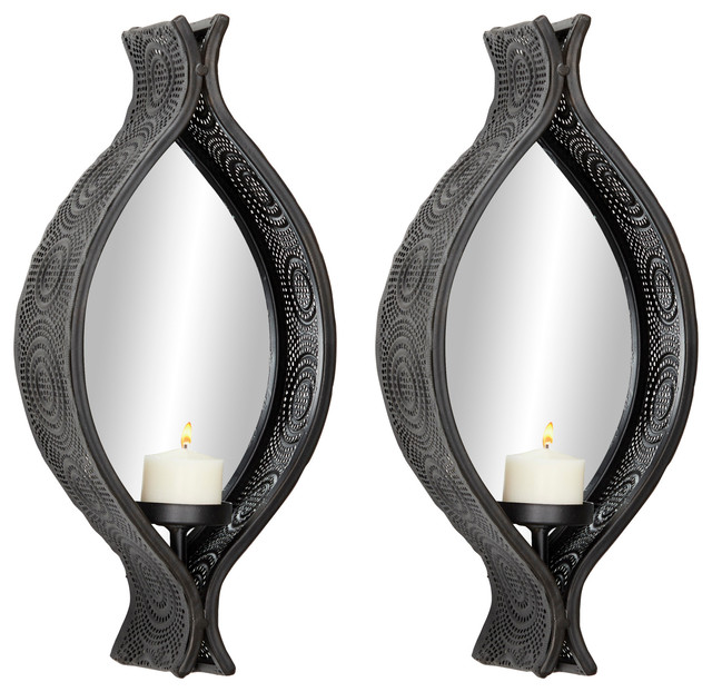 Smokey Black Oval Tinner S Metal Candle Wall Sconces Set Of 2