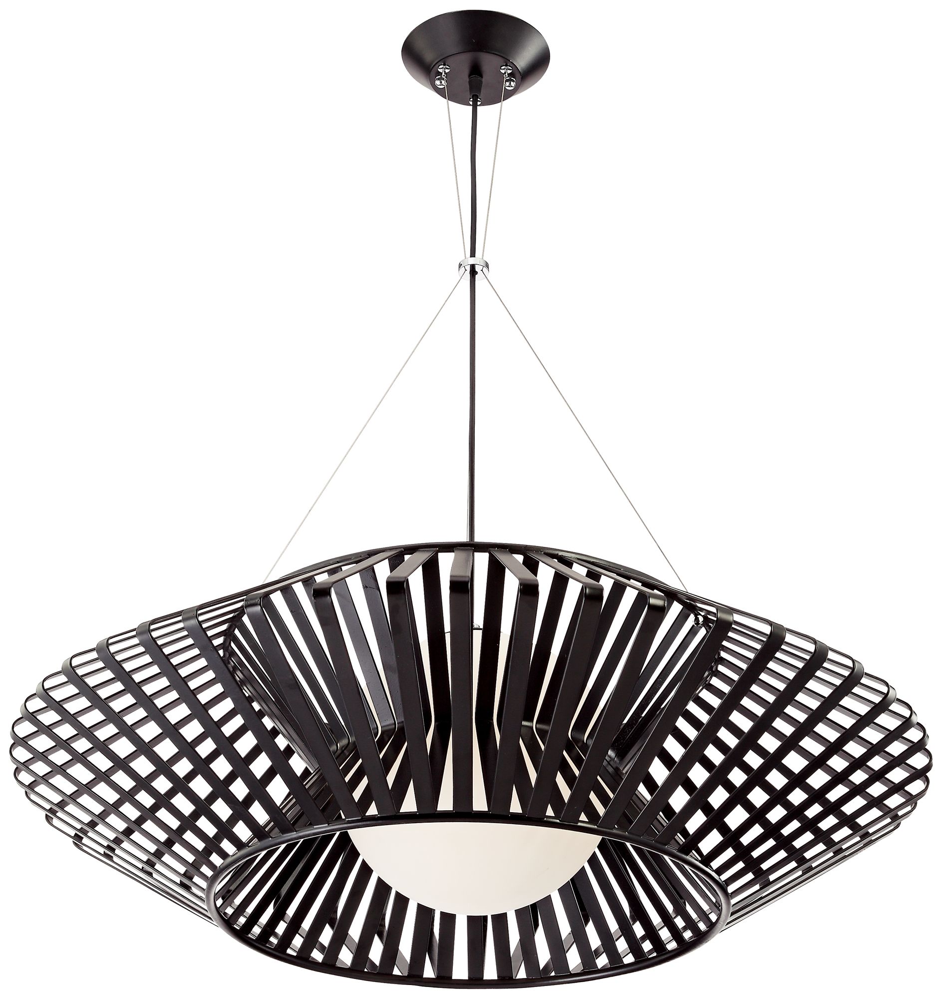 Modern Black Oval Metal Cage Pendant Light On Adjustable Hanging Rods