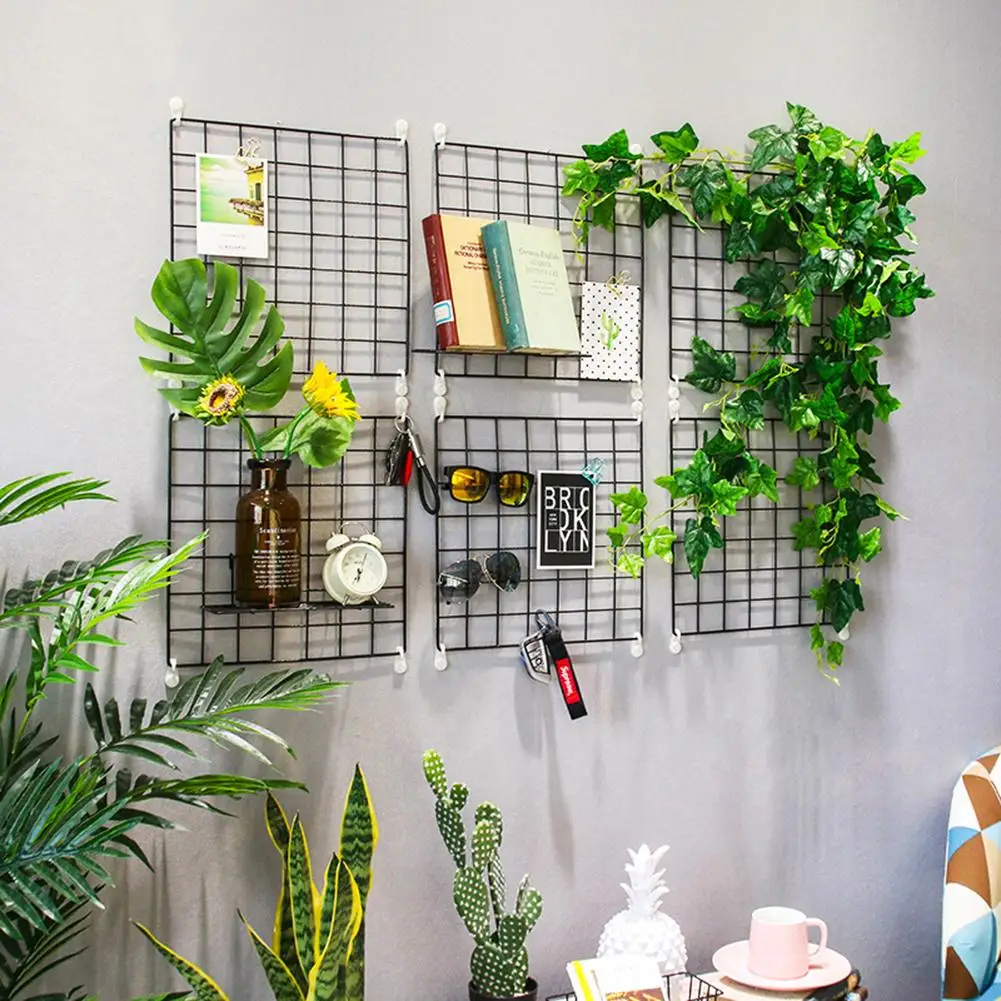 Black Metal Grid Wall Shelf Diy Wall Hanging Decor Photo Frame