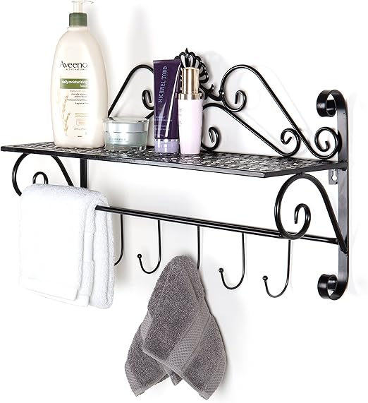 Addgrace Hook Brackets Handcrafted Forged Rustic Metal Wall Shelf