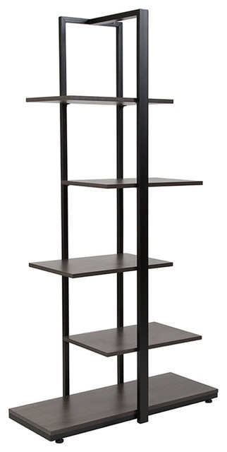 Offex Driftwood Finish 5 Tier Decorative Shelf With Black Metal
