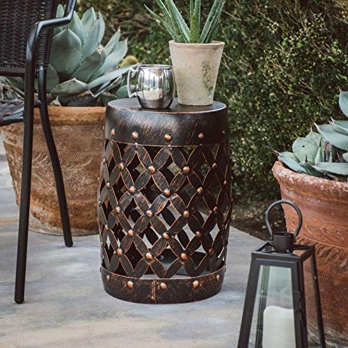 Black Bronze Finish Metal Lattice Garden Stool Patio Side Table