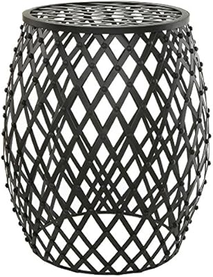 Black Bronze Garden Stool Metal Seat End Table Steel Lattice