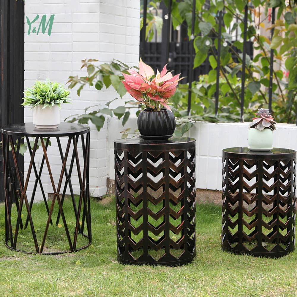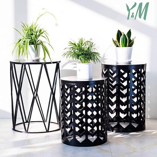 3pcs Set Black Metal Garden Plant Stand Patio Stool Home Side