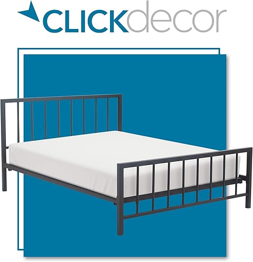 Amazon Com Clickdecor Evans Platform Bed Frame With Matte Black Metal Headboard Low Profile Modern Design Wood Slats Support No Spring Box Needed Queen Kitchen Dining