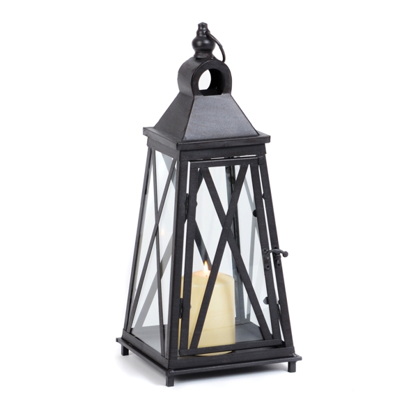 Classic 20 Inch Metal Lantern With Led Candle With Timer In Black