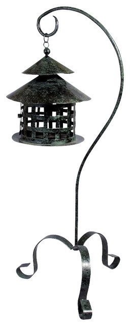 Metal Lantern Candle Holder W Stand In Dark Green Finish
