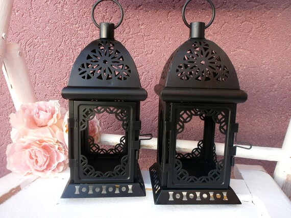Black Lanterns Set Of 2 Lanterns Wedding Centerpiece Metal Etsy