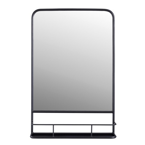 19 5 X 27 5 Metal Framed Wall Mirror With Shelf Black 3r