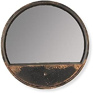 K K Interiors Round Distressed Black Metal Wall Mirror With Shelf