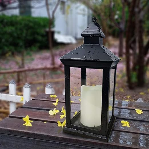 Illuminated Garden Outdoor Black Metal Flameless Led Lantern Timer