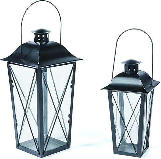 Black Metal Indoor Outdoor Lanterns Set Of 2 Amazon Co Uk Garden