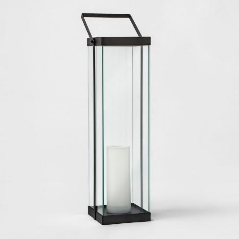 Black Contemporary Manhattan Pillar Candle Lantern Use Indoor Or