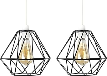 2 X Open Diamond Ceiling Pendant Light Shades Matt Black Metal Finish A3109