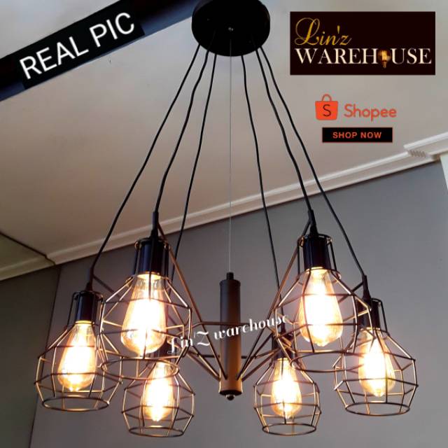 Lampu Gantung Modern Industrial Black Iron 6 Arms Pendant Light