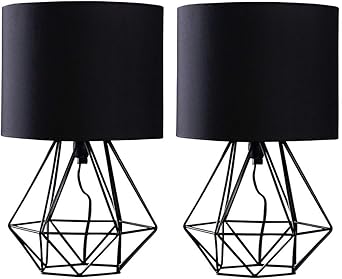 Pair Of Modern Black Metal Basket Cage Style Table Lamps With