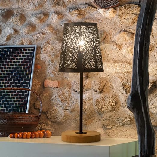 Oygroup Small Bedside Lamp With Wood Base Black Metal Stick And