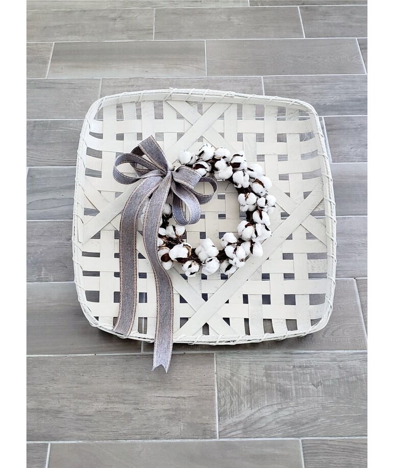 Cream Painted Tobacco Basket With Cotton Wreath Etsy
