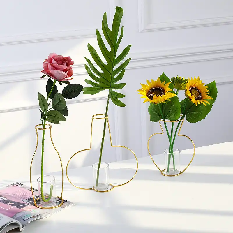 Metal Vase Frame Minimalist Black Gold Iron Wire Flower Vase Frame