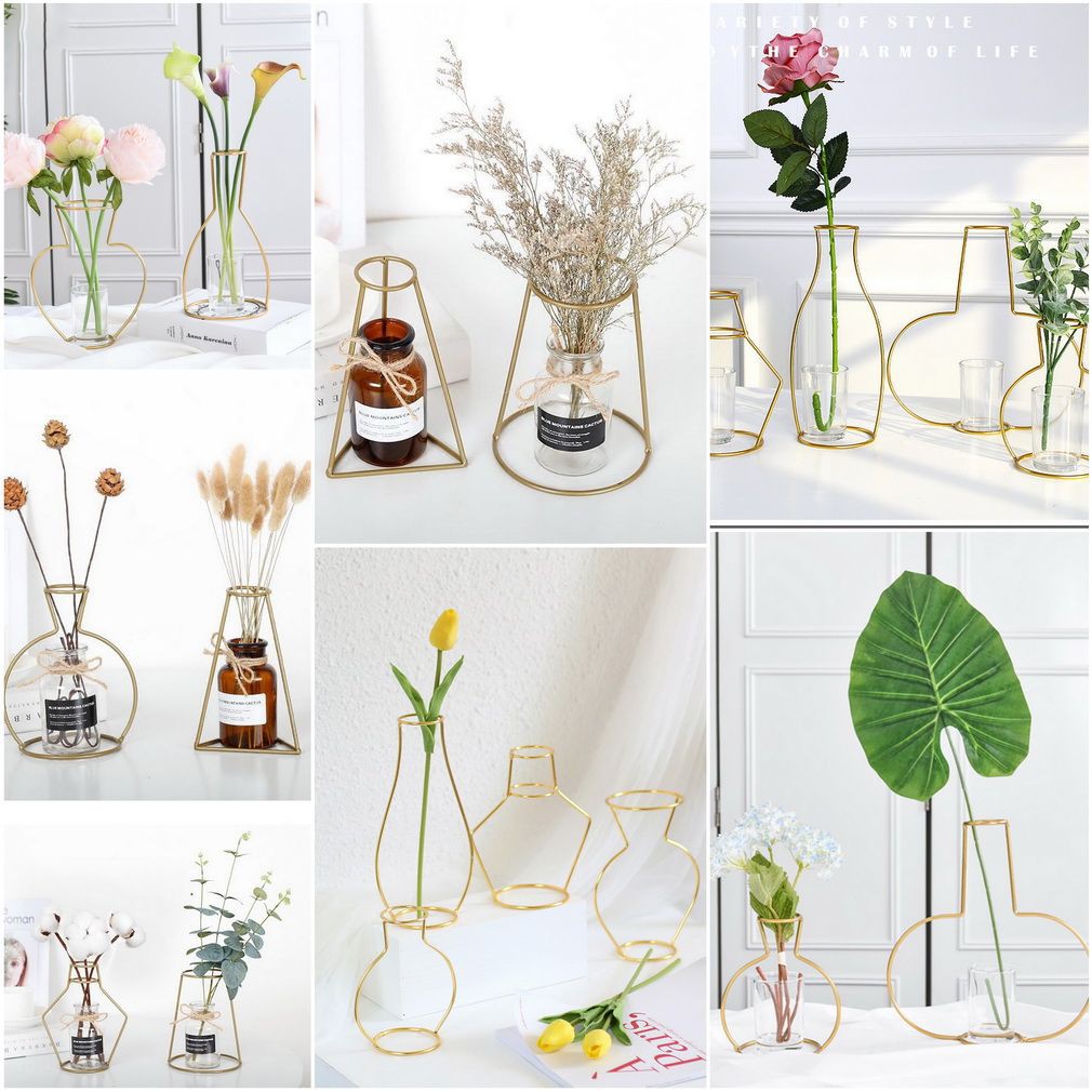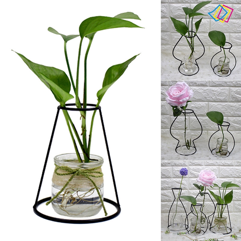 Fcd 1 Pcs Metal Iron Diy Vase Frame Black Geometric Frame