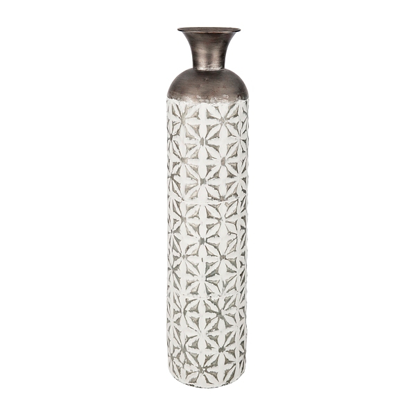 Decorative Large Metal Floor Vase With Glass Mosaic In Silver At