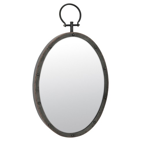 24 8 X 14 2 Oval Metal Wall Mirror With Rivet Trim Dark Gray
