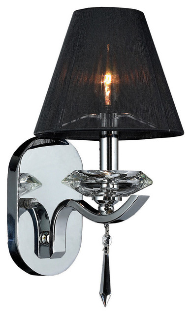 Modern 1 Light Chrome Finish Clear Crystal Wall Sconce Black