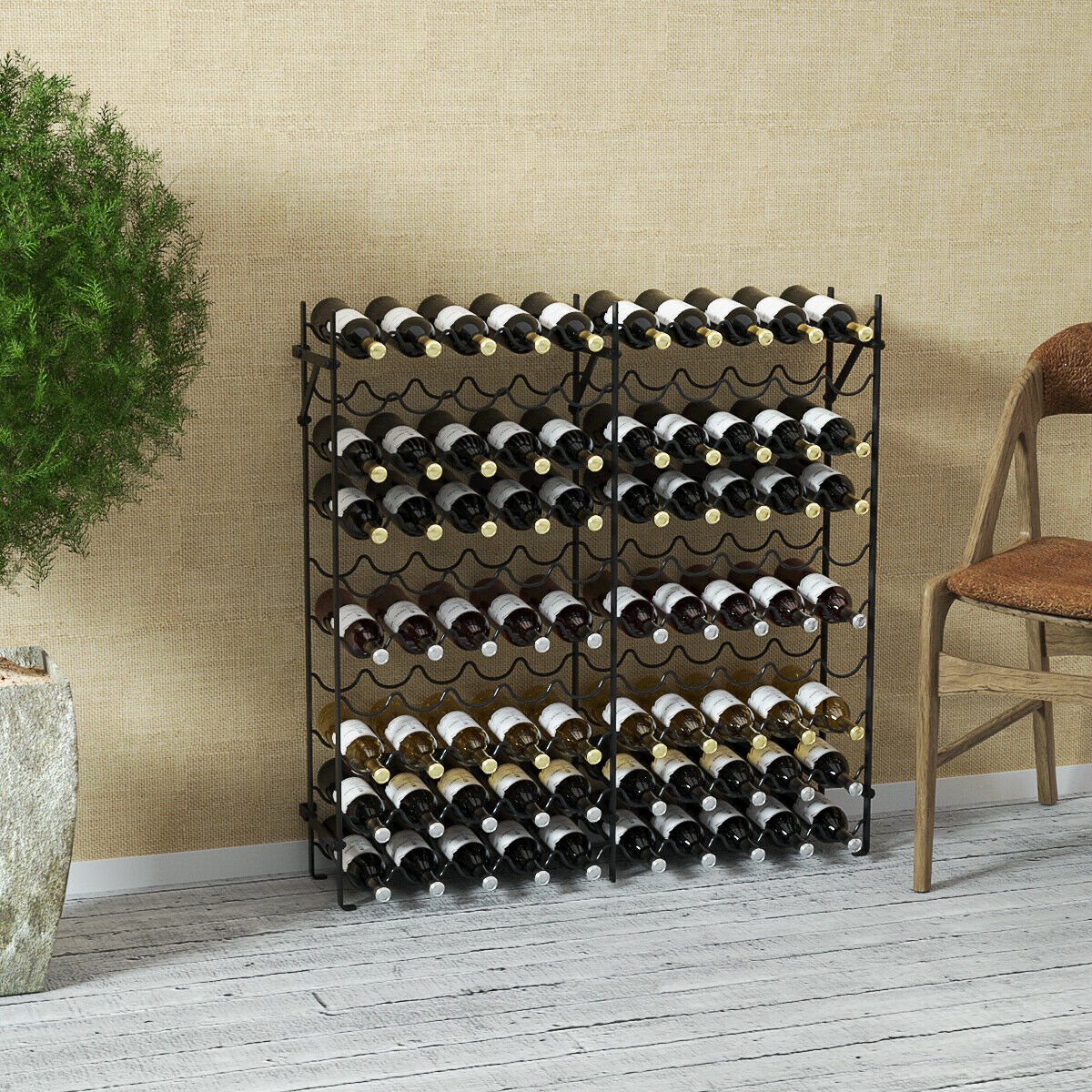 54 Bottle Foldable Black Metal Wine Rack Cellar Storage Organizer