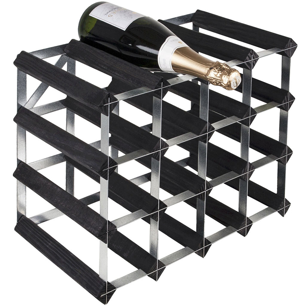 Rta 16 Bottle Wooden Wine Rack Galvanised Steel Black Ash 4x3