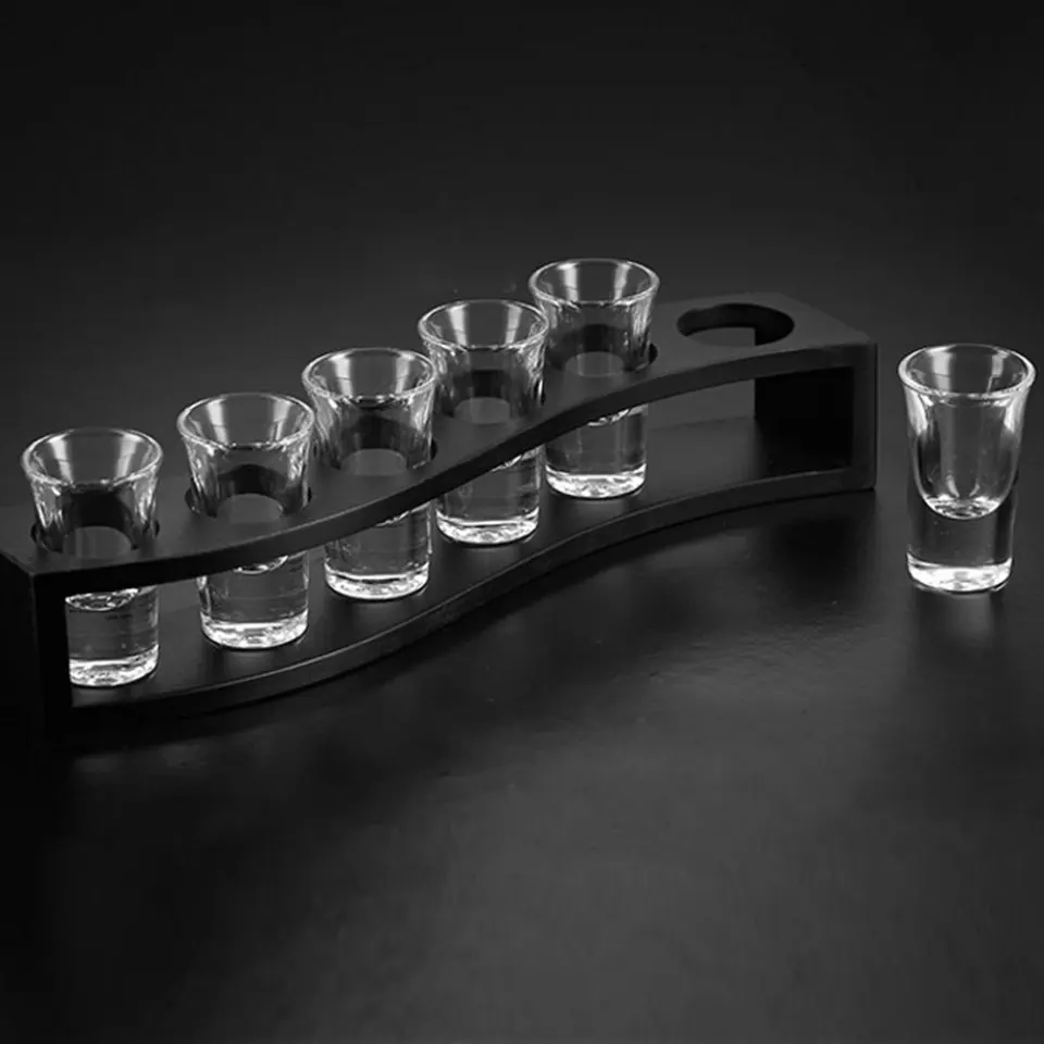 Home Kitchen Wooden Serving Tray Single Row Wine Glass Display Holder 6 Holes Beer Mug Stand Bracket Portable Decor