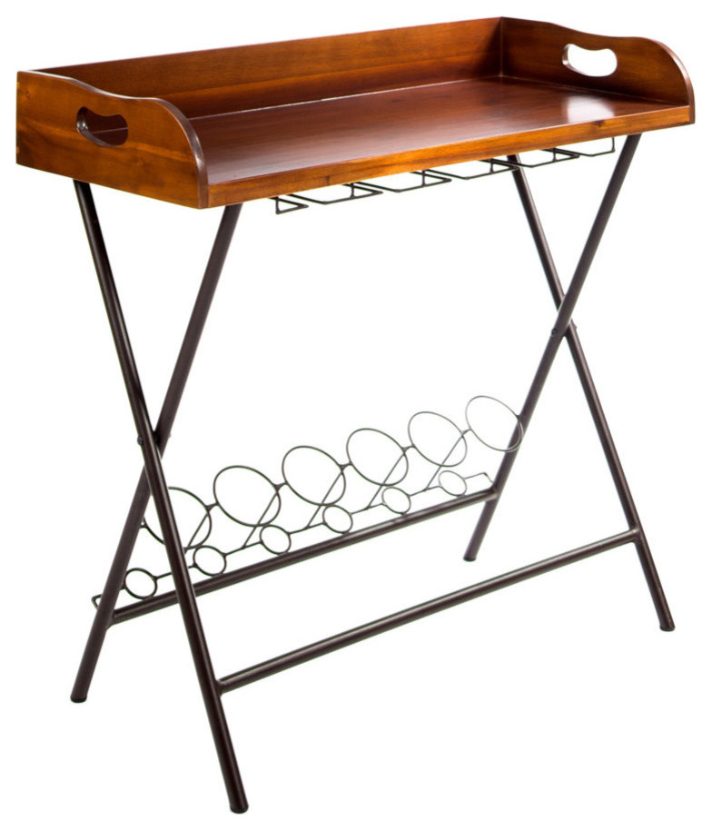 Gdf Studio Idris Mid Century Dark Oak Acacia Wood Bar Tray Industrial Wine Racks By Gdfstudio
