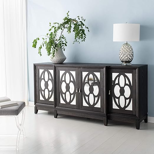 Black Wooden Frame Living Room 4 Doors Mirrored Cabinet Buffet
