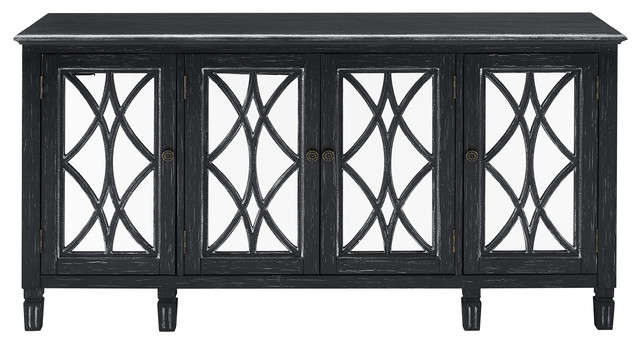 Home Fare Four Door Black Overlay Mirror Console Farmhouse