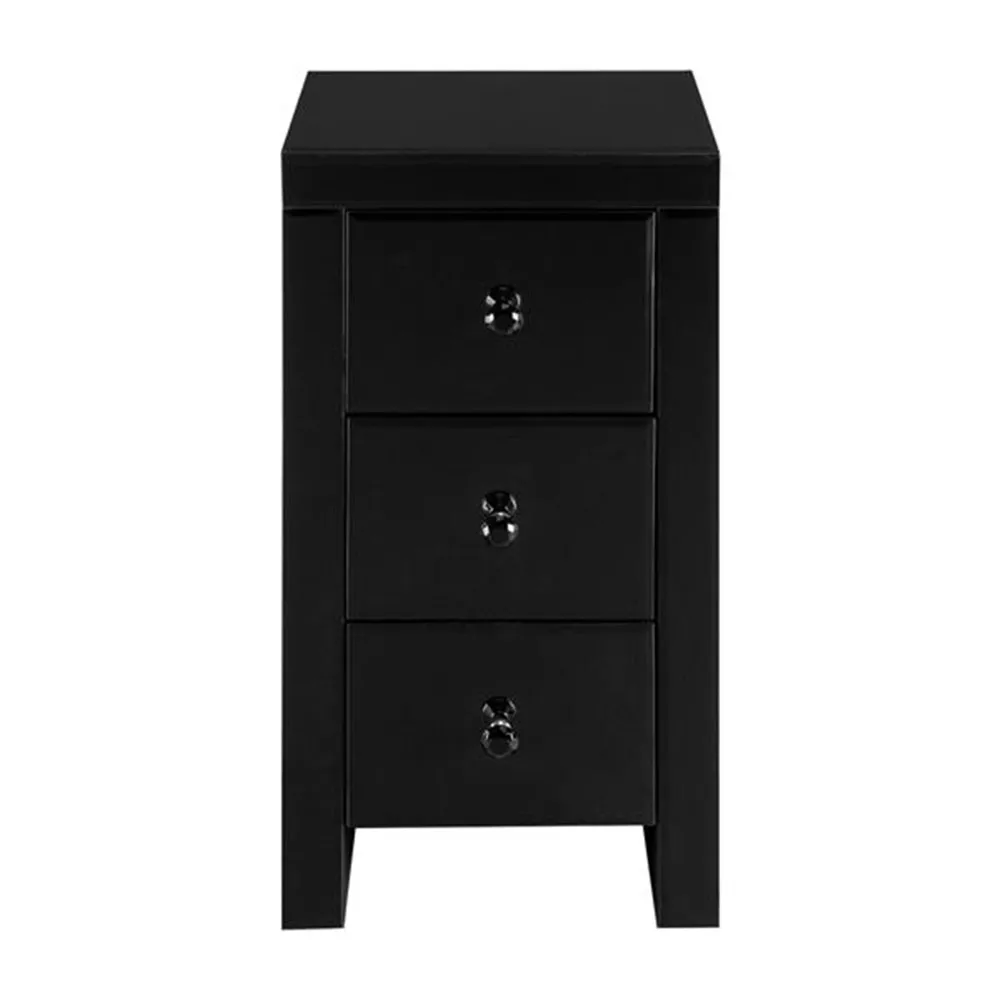 Mirrored Glass Bedside Table With Three Drawers Black Side Table